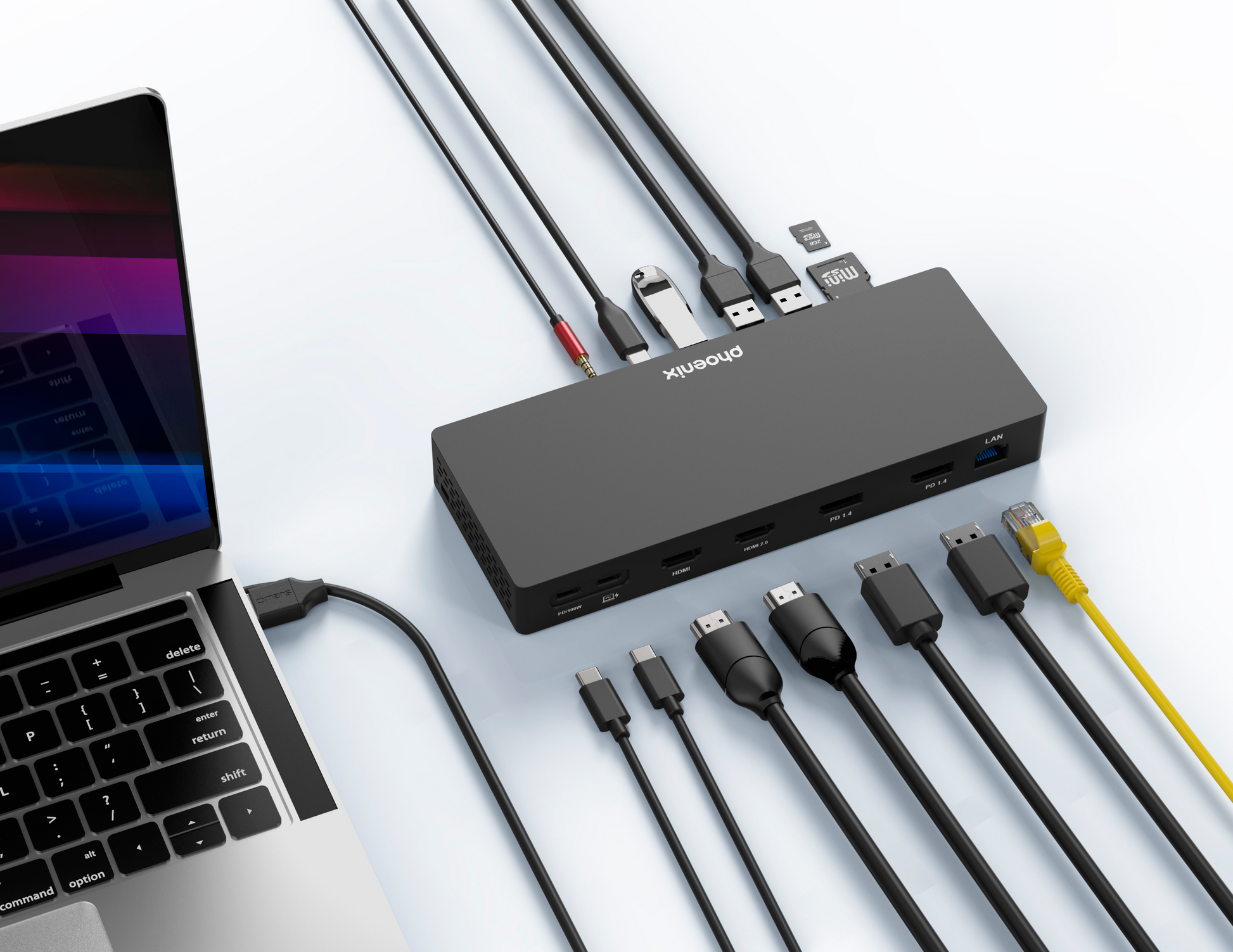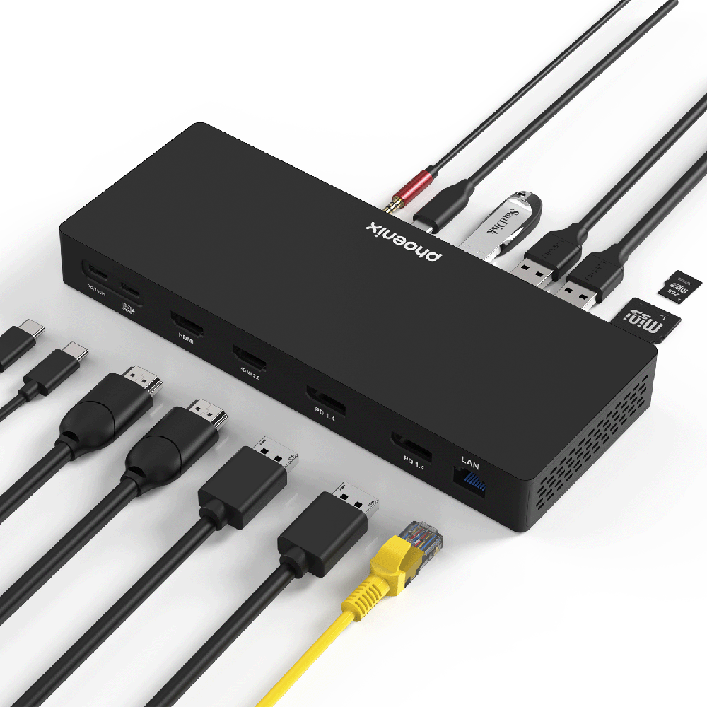 This 14-in-1 Hub is compatible with Thunderbolt 3 and 4 so you can enjoy up to 4 desktops (depending on operating system limitations). Enjoy images up to 4k 60hz thanks to its HDMI 2.0 and DP 1.4 ports.