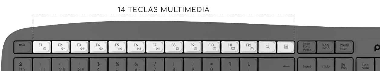 Access your computer's functions quickly with the 14 multimedia keys. Open email and the browser, turn the volume up and down, control media playback, open the calculator, and more. (Multimedia keys have been tested in Windows® 11, some of them may not work in older versions)