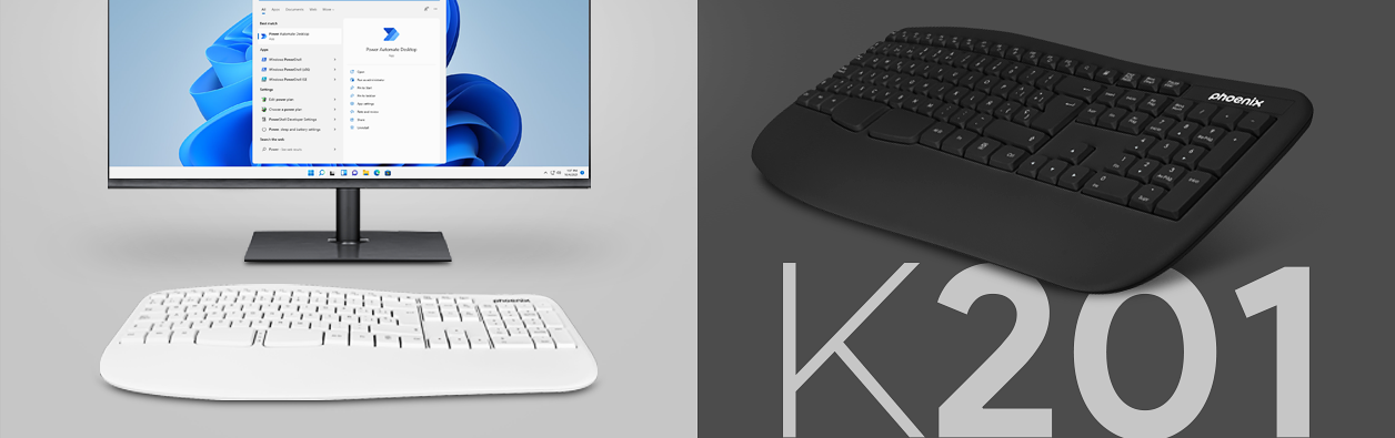 The Phoenix Technologies K201 keyboard has been specially designed with those people who type on the computer for long periods of time in mind.