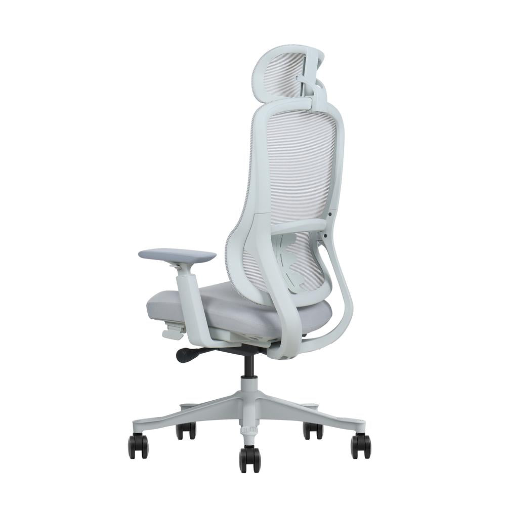 Su estructura de nylon reforzado aporta ligereza y resistencia, manteniendo un diseño moderno y minimalista. El respaldo en malla mesh transpirable se adapta a la curvatura natural de la espalda, ofreciendo ventilación continua y un soporte lumbar fijo que promueve una postura saludable.