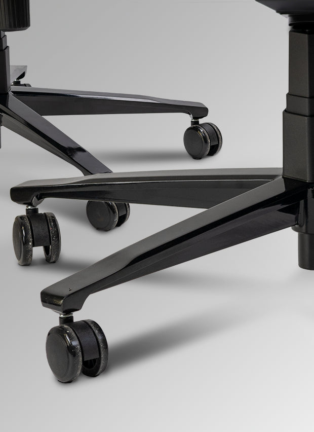 El deslizamiento suave está garantizado gracias a la base de aluminio, que aporta resistencia y durabilidad. Las ruedas de PU de doble capa permiten un movimiento fluido sobre cualquier superficie, protegiendo el suelo contra daños.