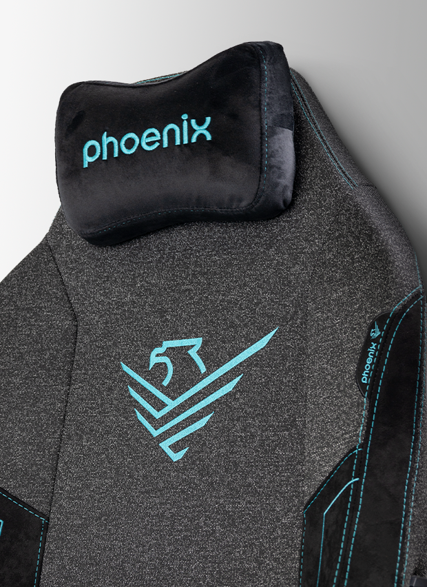 El tejido de la silla Phoenix está compuesto por una tela de alta resistencia con una capa de 0.2 cm de espuma blanda, proporcionando un acabado suave y cómodo, ideal para largas sesiones. El diseño, junto con los bordados en azul, aporta una estética sofisticada que se adapta perfectamente a entornos profesionales o gaming, combinando lujo y funcionalidad.
