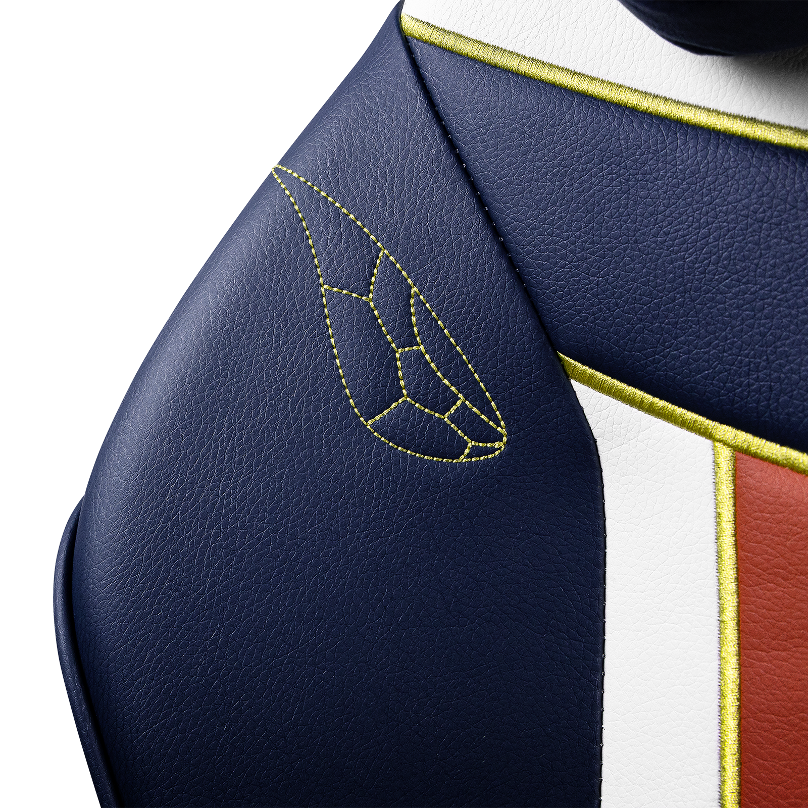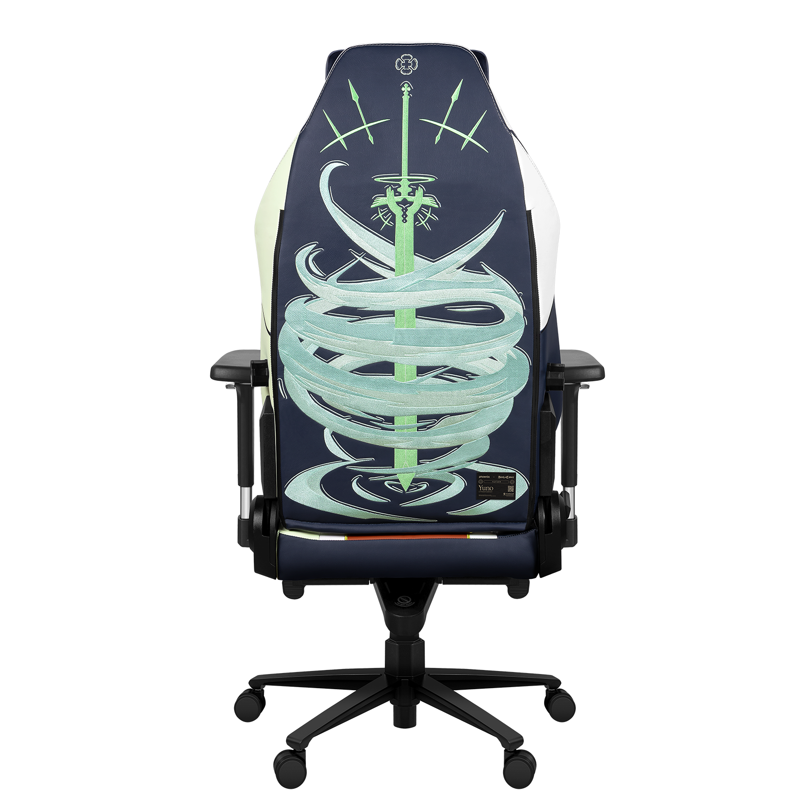 Al girar la silla, el viento toma forma. El respaldo muestra un bordado monumental en el que una espada emerge rodeada de corrientes que giran a su alrededor, representando tanto su grimorio como su vínculo inquebrantable con la magia eólica. En lo alto, el trébol dorado resplandece como símbolo del Reino del Trébol y del destino que guía a Yuno hacia lo más alto. Cada detalle, desde las alas grabadas hasta los patrones florales, transmite la sensación de estar frente a una pieza nacida para líderes.