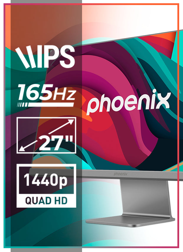 El nuevo monitor Phoenix Stellar presenta un panel IPS de 27 pulgadas que ofrece una experiencia visual excepcional. Con una resolución 2K de 2560 x 1440, una tasa de refresco impresionante de 165Hz y un tiempo de respuesta ultrarrápido de 1 ms, este monitor destaca por su calidad de imagen y rendimiento.