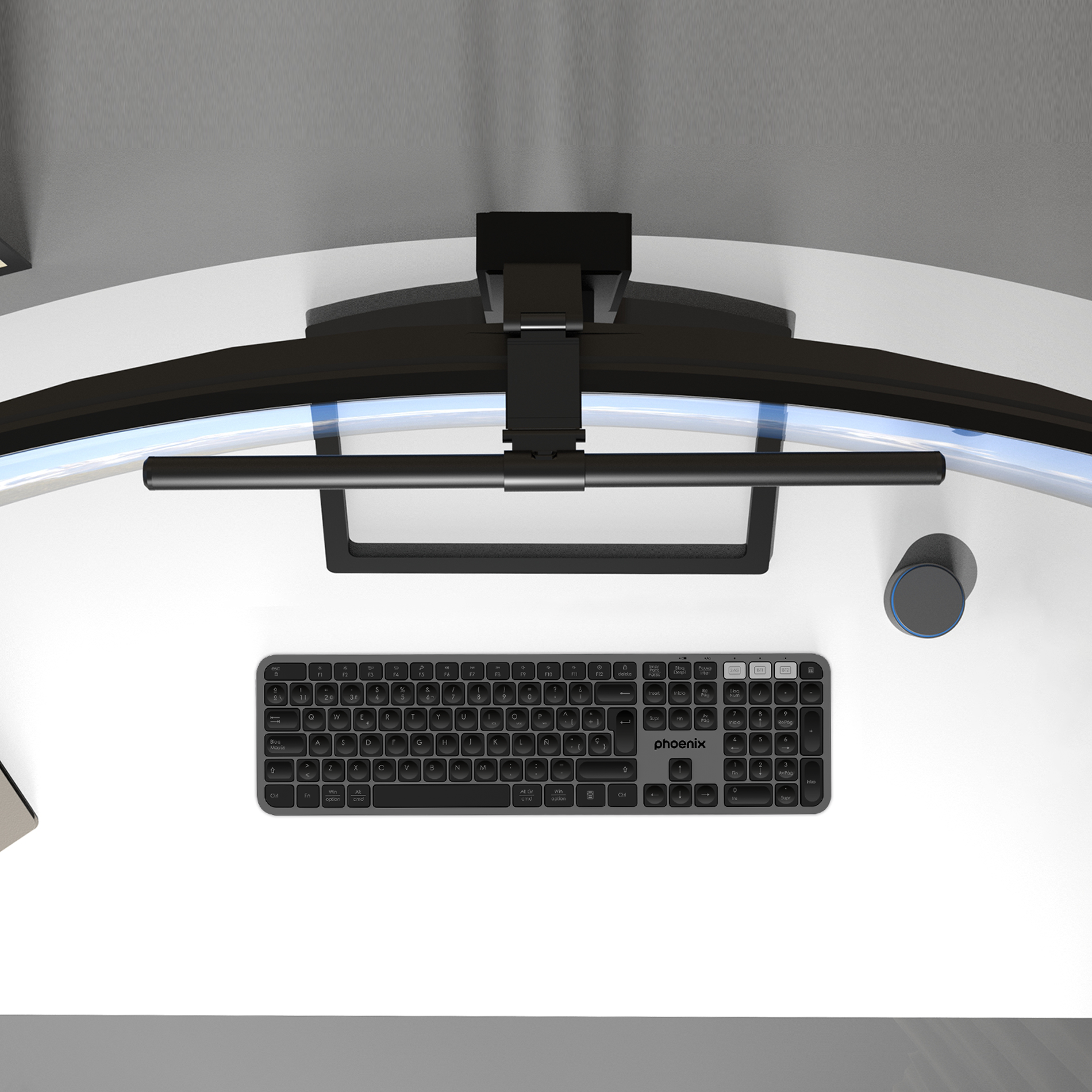 La barra de luz para monitores HeliosPro de Phoenix elimina los reflejos del sol sobre tu pantalla, a la vez que protege tus ojos creando una luz homogénea. Con una iluminación LED