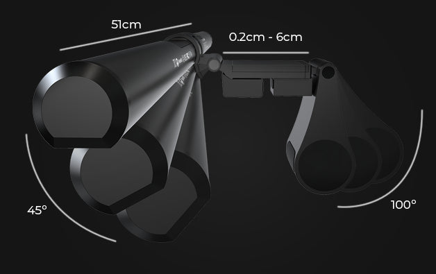 El contrapeso posterior añade estabilidad al desplazar el centro de gravedad, y al ser ajustable puedes colocar y asegurar HeliosPro para que nunca se caiga. Fijación y estabilidad para una iluminación estable y segura.
